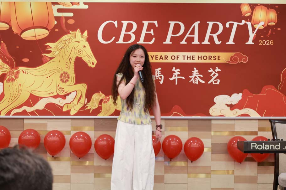This year's party was a testament to the incredible and multifaceted talents within the CBE family. The evening was filled with an energetic atmosphere, featuring a spectacular lineup of 10 performances. The program ranged from an engaging computer game and several rounds of a lucky draw with attractive prizes like Smart Glasses and Game Consoles, to a rich variety of artistic expressions. The audience was captivated by beautiful Violin and Piano performances, a soulful solo song, a harmonious Instrumental Ensemble, a skillful Kendama demonstration, a traditional Guzheng performance, and a classic English choir.