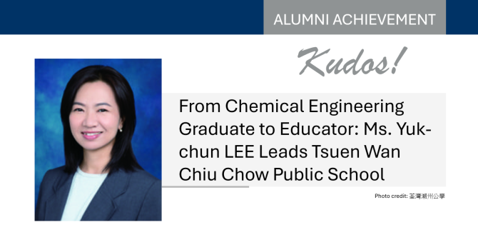 "As Sally’s Alma Mater Department, we are very proud of her achievements. We are also pleased to learn that many of our alumni are contributing to the society in various fronts." said CBE Head, Professor I-Ming HSING.