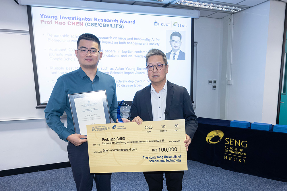 Prof. Hao CHEN, Assistant Professor of the Department of Computer Science and Engineering and Department of Chemical and Biological Engineering, and Division of Life Science, receives the Young Investigator Research Award for 2024-25.